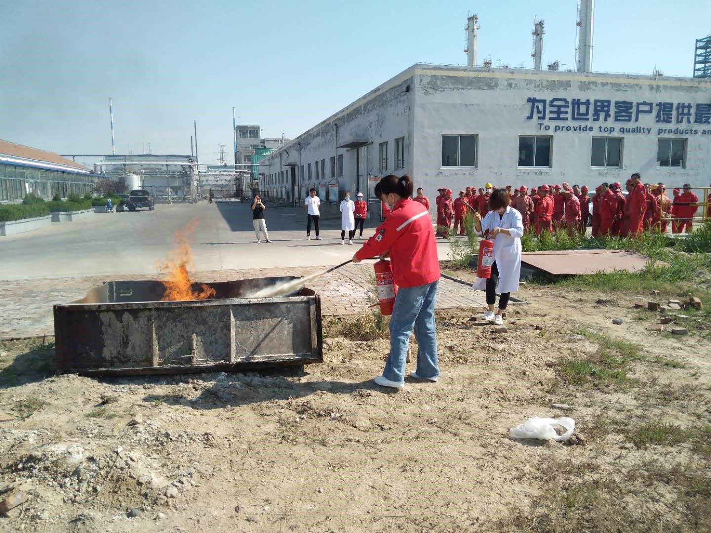 Before the drill, the leaders of each department and the safety officer explained the emergency disposal plan of the fire scenes, the use principle, basic operation method and use notes of the fire extinguisher, air respirator, fire hydrant and fire hose. After listening and observing carefully, all employees experienced the process of firefighting on site. In face of the burning fire, all employees were very brave and active, and put out the smoke and fire quickly according to the steps and methods of firefighting. As a chemical enterprise, we should have basic knowledge of firefighting and master the use of fire extinguishers and emergency rescue equipment. During the drill, every employee also experienced how to use the emergency rescue equipment correctly and how to take emergency measures in case of fire, which laid a solid foundation for the fire safety work of Zhanhua branch.