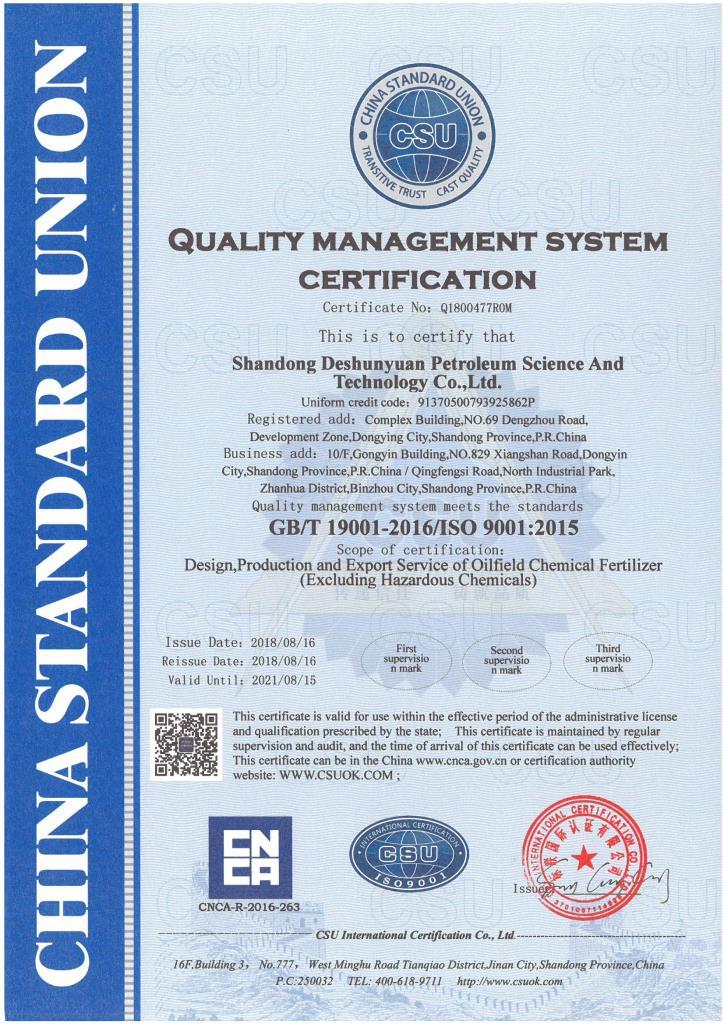 2018年8月22日,公司順利通過了標聯國際認證公司關于9000、14000和18000的認證監督審核,并收到最新版的認證證書。