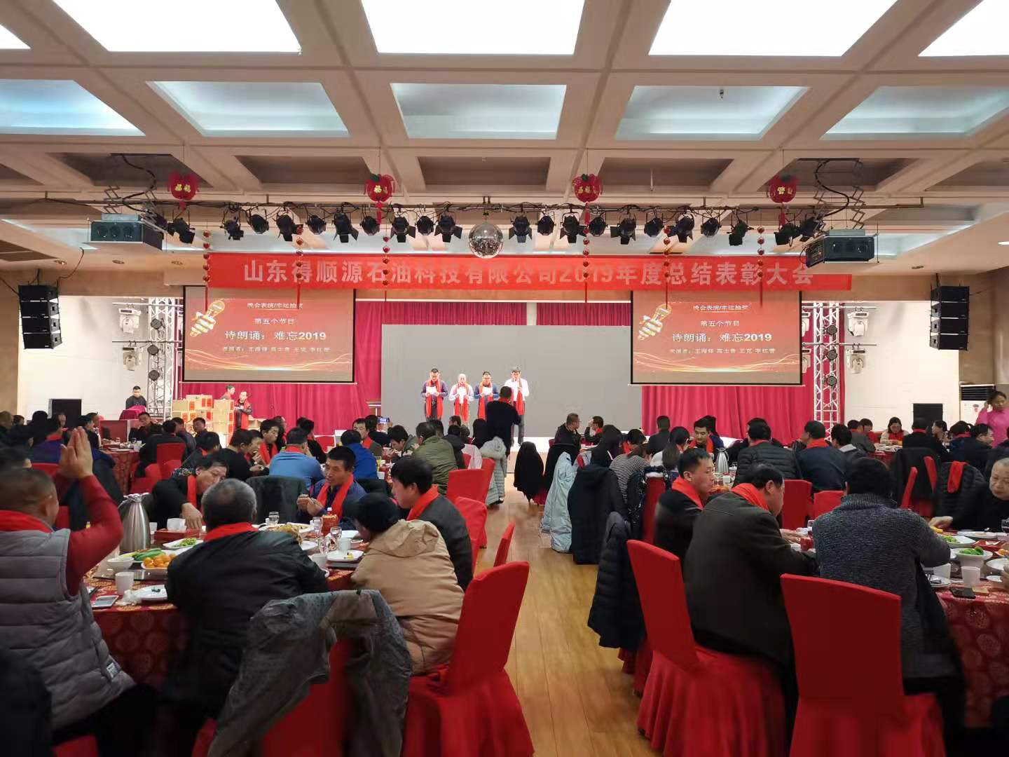 時(shí)光開新篇,從容迎華章 。2020年1月17日下午山東得順源科技有限公司年會暨2019年度總結(jié)表彰大會在會展中心隆重舉行。宴會廳座無虛席,流光溢彩,公司員工100余人參加此次年會。