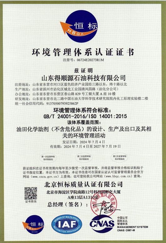 2024年7月4日,公司接到北京恒標質量認證有限公司通知,順利通過了質量管理體系、環境管理體系和職業健康安全管理體系認證的再認證審核,符合認證標準的要求,繼續保持認證注冊資格,證書持續有效。