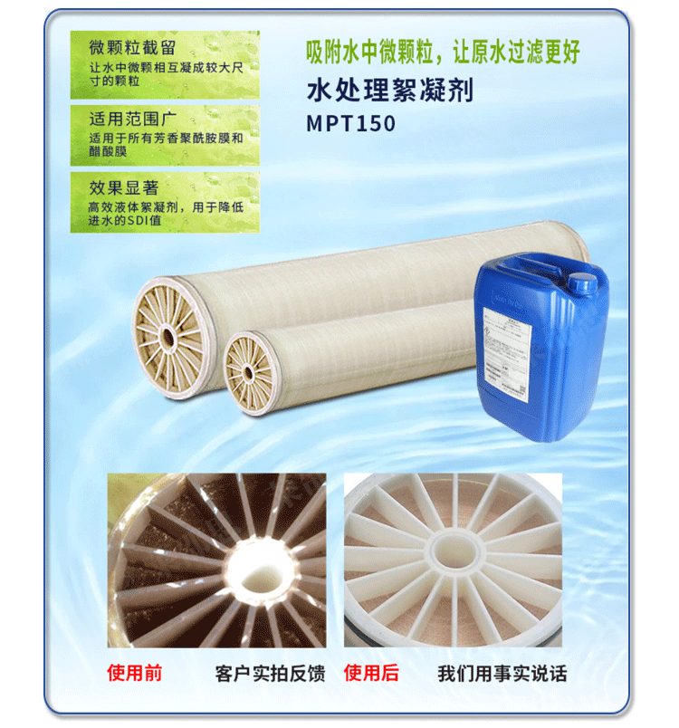 MPT150絮凝劑是專為多介質(zhì)過(guò)濾器顯著改善膠體的去除率而設(shè)計(jì),