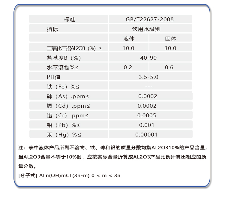 聚合氯化鋁是一種無機高分子混凝劑,由于氫氧根離子的架橋作用和多價陰離子的聚合作用而生產(chǎn)的分子量較大、電荷較高的無機高分子水處理藥劑,分子式:ALn(OH)mCL(3n-m)0